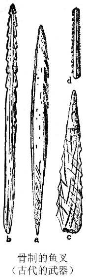 “用了这种石头,他得到食物,衣服,住屋,保护自己被野兽侵犯。他的衣服是一张兽皮,横披在背上,他的居处是一间用了树枝和泥织成的茅屋;他的食物是肉,是从行猎时得来的。饲养家畜是完全不知道的,地土都荒废着,一切工业都没有的。”