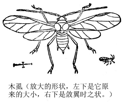 “真奇怪,亲爱的孩子。为蚂蚁养育乳牛的树,不只接骨木一种。在别的植物上也有木虱。玫瑰树和白叶上的木虱是绿的;接骨木、豆、莺粟、荨麻、杨柳、白杨等上的木虱是黑的;橡树、蓟等上的木虱是紫铜色的;夹竹桃、坚果等上的木虱是黄的。那些木虱都有两跟漏出来甜汁的管子;争着来喂蚂蚁。”