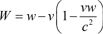 许多有关系的物体速度的总和,不是相加的,但比各分速度之总和小一点。比如你在火车的通道上行走,每点钟四英里,你的火车每点钟行三十英里。你对铁路的速度,并不是每钟十四英里,但是稍小一点。