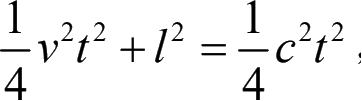 但是据迈可生,莫尔列的试验,两只鸽子竟是同时回来的!他们试验的装置,完全和鸽子的譬喻同样。设命距离为l,地球在以太中的速度为c,则光向地球运动上往来的时间为