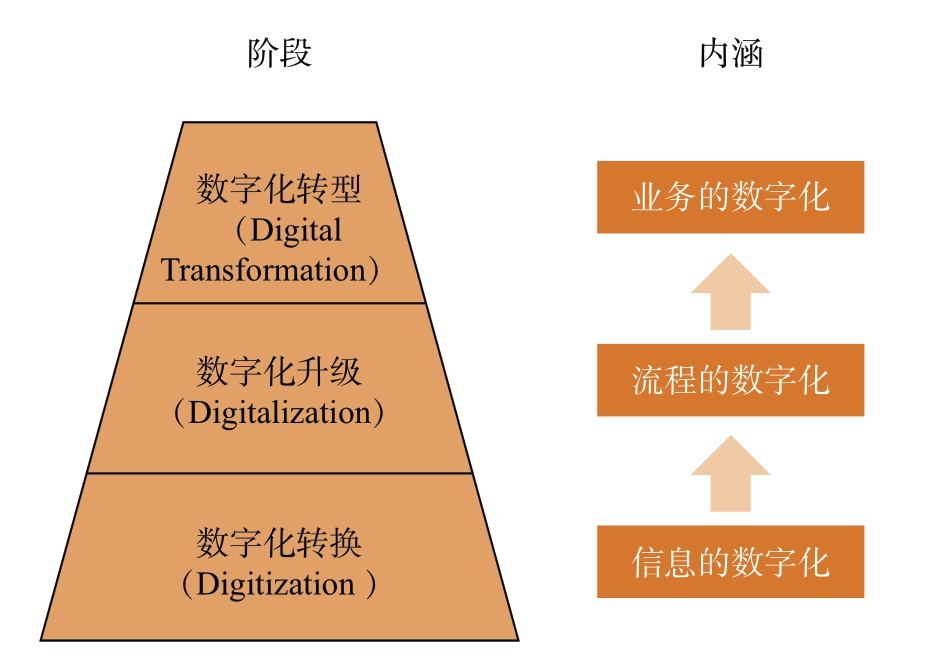 高德纳咨询公司(Gartner,简称高德纳)认为,数字化转换反映的是“信息的数字化”,指的是从模拟形态到数字形态的转换过程,如从模拟电视到数字电视,从胶卷相机到数码相机,从物理打字机到Word软件,其变革的本质都是将信息以“0和1”的二进制数字化形式进行读写、存储和传递。