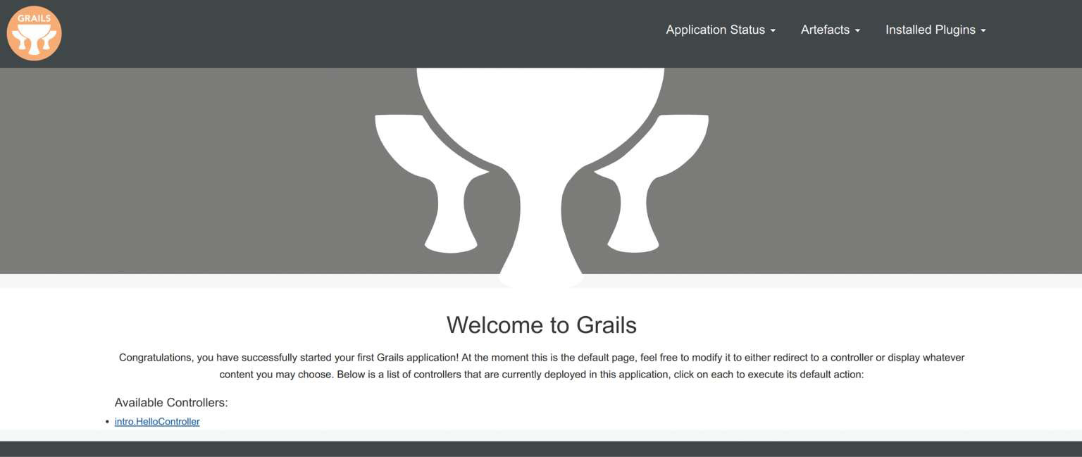 # 进入项目所在目录 $ cd~/ grailsProjects/intro # 创建名为hello的控制器 # 自动创建出HelloController.groovy和测试文件HelloControllerSpec.groovy $ grails create -controller hello | Created grails -app/controllers/intro/HelloController.groovy | Created src/test/groovy/intro/HelloControllerSpec.groovy