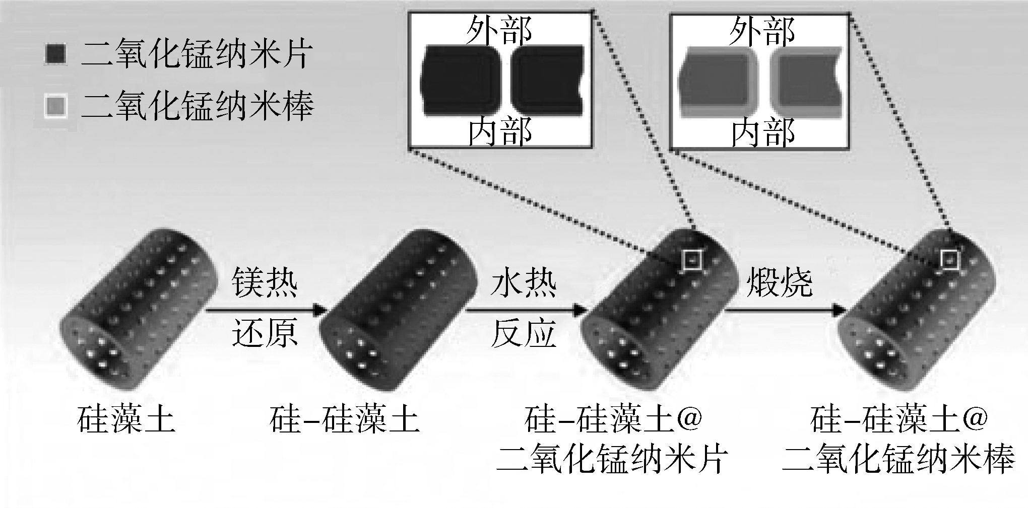 图4.8 硅-硅藻土@二氧化锰超级电容器材料制造示意图