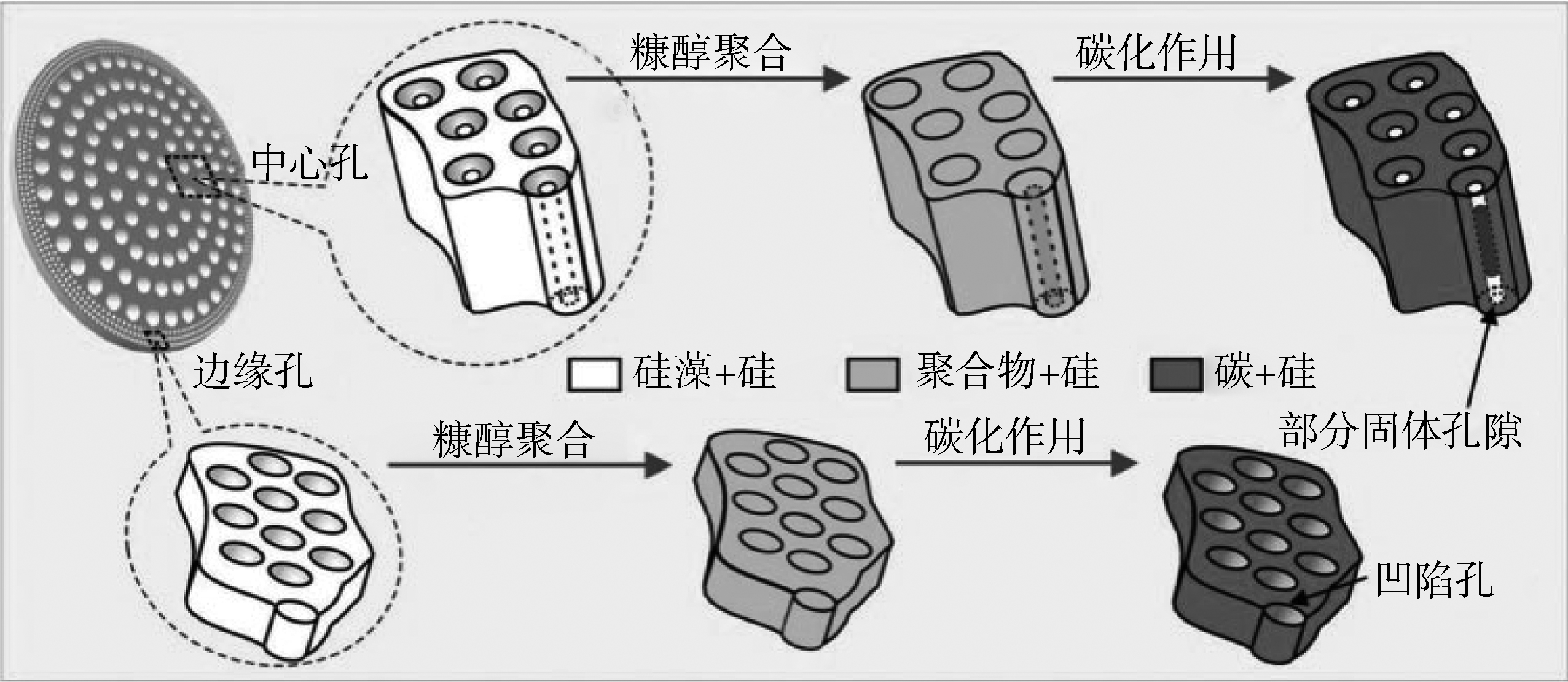硅藻土被用作合成大孔碳的模板。然而,在硅藻土基多孔碳的制备中,总是使用硫酸作为催化剂来催化碳前驱体。硫酸的加入对环境有潜在危害,也增加了制备成本。在我们之前的研究中,我们发现硅藻土本身含有固体酸位:Brønsted酸位来自一些氢键键合的硅烷醇,Lewis酸位来自非常小的粘土矿物颗粒,牢固地粘附在硅藻壳上。因此,利用硅藻土(来自圆筛藻属)的这些固有酸性位点而不是添加酸来催化碳前驱体,并研究了固体酸度对多孔碳最终结构的关键影响。