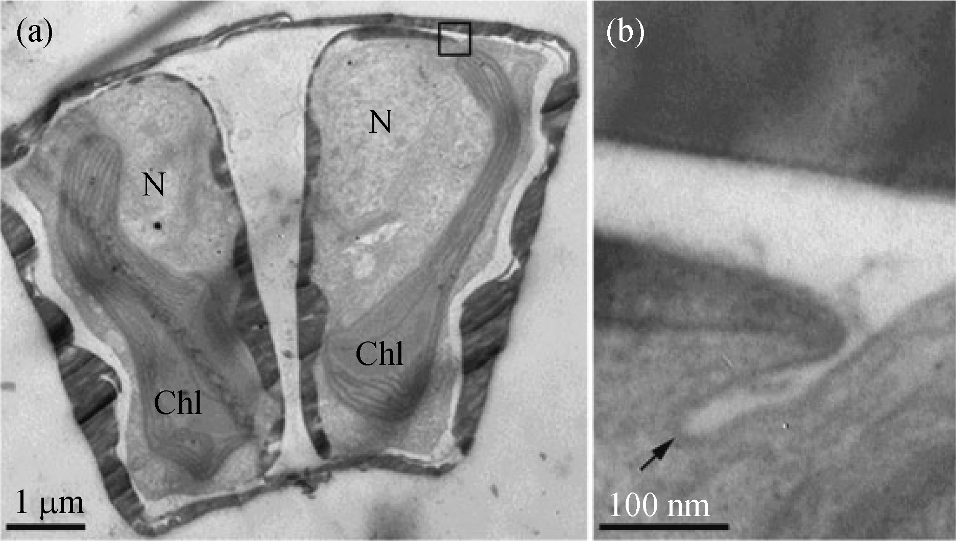 图5.9 瓣膜胞吐后的细胞(a)和具有第一环带形态发生的初始阶段(b)的TEM图箭头指出形成了主要的SDV