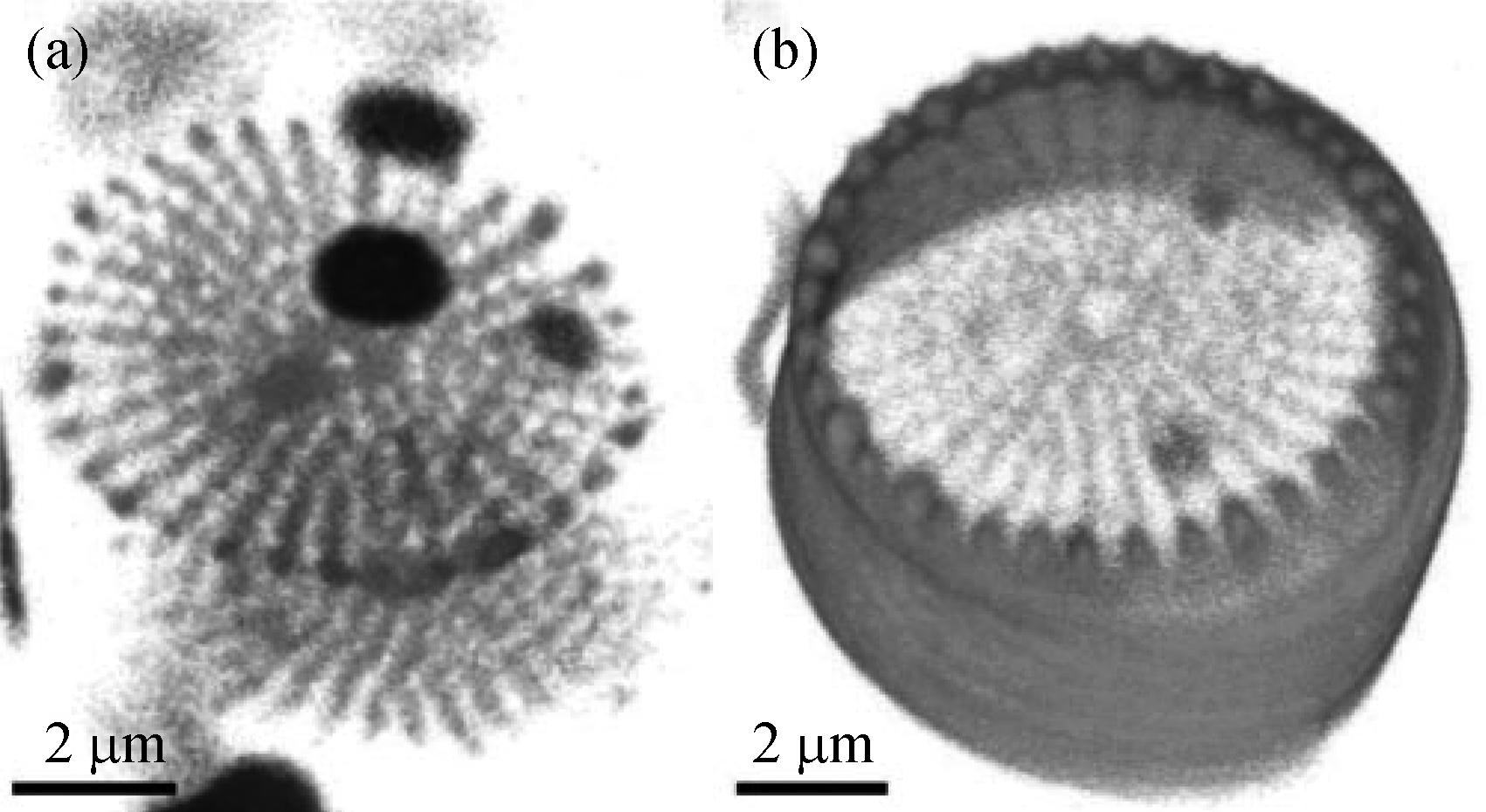 因此,我们认为SDV是古硅藻祖先细胞内体溶酶体系统的一部分,这一假设得到了质膜和硅膜之间的密切联系、瓣膜胞吐过程中的连接、SDV内的酸性pH值 [73] 以及生长中的瓣膜被溶酶体的重要荧光染料Lysotracker Yellow主动染色这一事实的支持(见图5.10)。