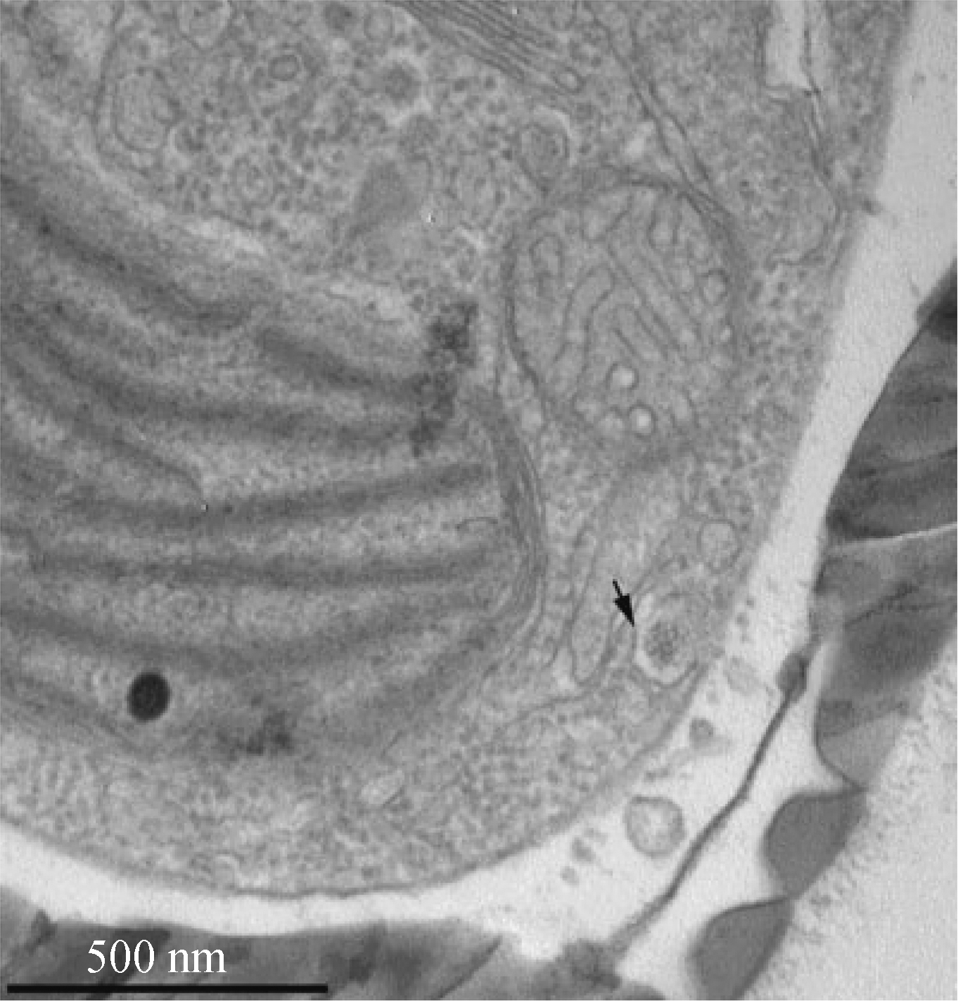 图5.8 质膜细胞的胞吐囊泡(箭头指向)的TEM图