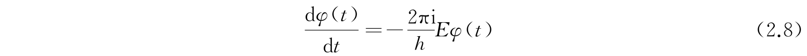 上述方程的右方是时间t的函数,而左方仅是坐标x的函数. 因此方程的每一边就必须等于一个既不依赖x也不依赖t的数值;也就是说等于一个常数,我们叫它为E. 现在方程(2.7)可以写成两个方程,就是