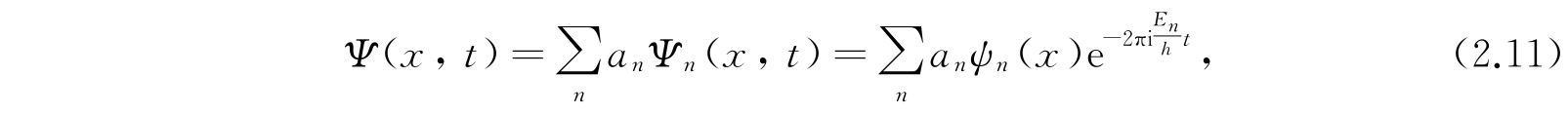 方程(2.9)常被称为薛定谔波动方程,有时也叫作振幅方程,因为ψ(x)确定函数Ψ(x,t)的振幅. 与常数E的不同数值相对应,这个方程有不同的解. 我们用下标n来区别这些E的值. 类似地,与E n 对应的振幅函数用ψ n (x)表示.φ(t)的方程可以立刻积分出: