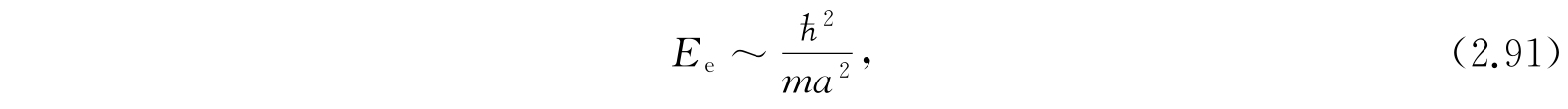 因此,我们可以把分子的能级分成电子能级、振动能级和转动能级三种形式,我们可以估计这些能级的相对数量级. 假定分子的线性尺度的数量级为a. 与价电子(它运动时几乎扫过全部分子容积,而不是约束在近核的内层)的运动联系的能量数量级与一个在半径为a的圆轨道上运动的、质量为m的电子的能量同级,也就是
