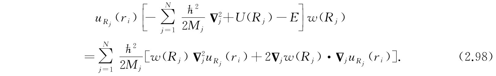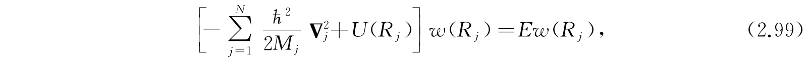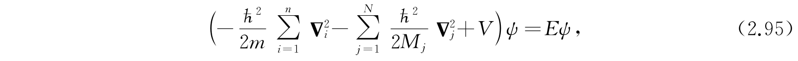 是第j个核的质量,E是总能量. 如果以方程(2.94)所表示的量为基准,那么很显然,核的动能将是一个四级项. 假使把这略去,波函数ψ中包含的核坐标R