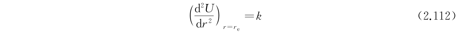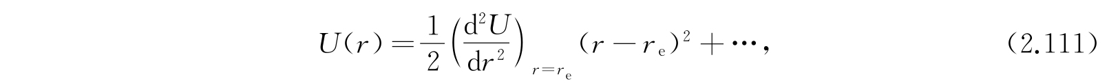 关于双原子分子的原子间的力能够作出的最简单的假定是:力正比于核间距r和它的平衡值r e 的差值. 因为U在r e 处有一极小,从而在r e 附近,