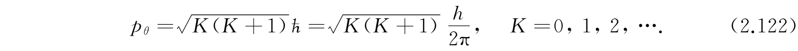 因为按照方程(2.107),有2K+1个M值与各个不同的波函数对应,也与不同的转动轴定向对应,所以转动态是2K+1重退化的. 事实上发现在任意特别选定的方向,例如分子的轴(取作z轴)上角动量的分量是