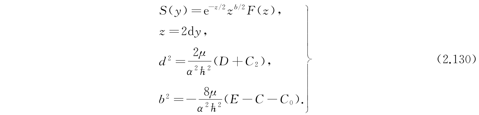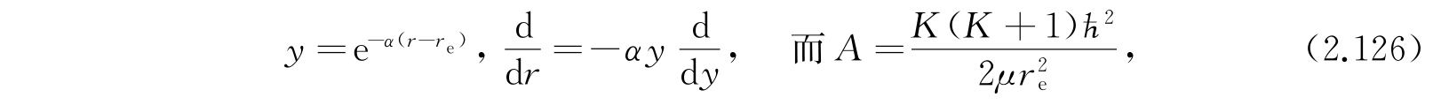 现在用下列替换可以把式(2.128)化成前面处理过的氢原子的径向函数方程: