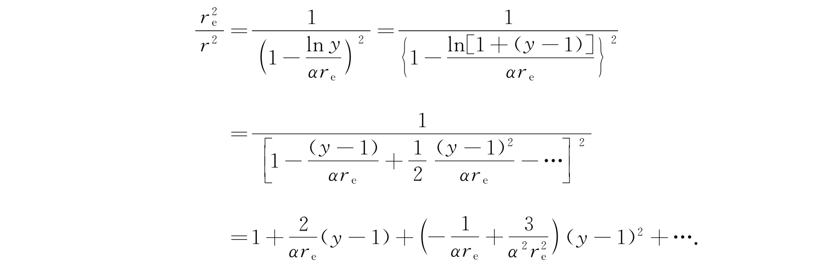 最后一项是转动和振动型的耦合效应,所以在低转动和振动态时是很小的. 在平衡时r=r e ,y=1,我们把(r e /r) 2 展成(y-1)的幂级数: