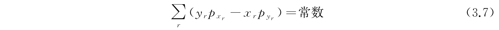 例如,在一个由质量为m的简单粒子群组成的系集之中,线动量的x分量为常数的表示式是
