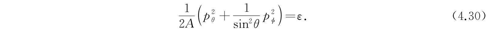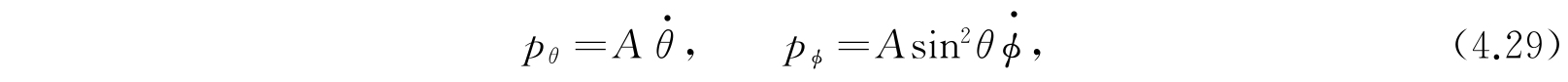 最后一个例子,我们考虑轴对称的但没有绕轴自旋的刚性转子. 令A为横向转动惯量,θ、ϕ为轴的球极坐标,其共轭动量为
