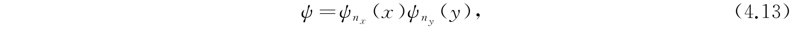 将此方程分离成变量为x及变量为y的两个方程. 我们看到本征函数的形式为