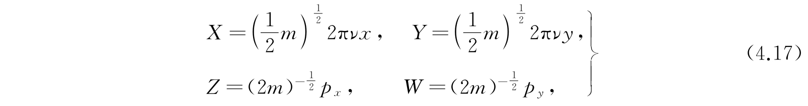 ,而n只能是正整数或零. 量子理论中相邻轨道之间的面积是h. 因此,当量子数n大时,可能的轨道几乎密合在一起,但仍然是被面积h所隔开的,此时,与每一量子态对应的相空间单元的面积为h. 于是我们对于谐振子验证了极限定理(在3.5节中我们曾经叙述过这个定理).