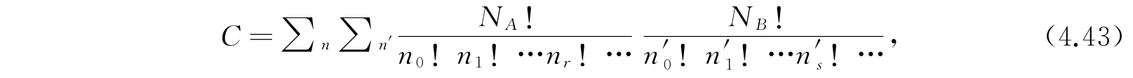 并且也恰好是对满足式(4.39)、(4.40)及(4.41)的正整数(或零)n、n′求和. 与式(4.43)比较,我们看到这个系数就是总配容数C.