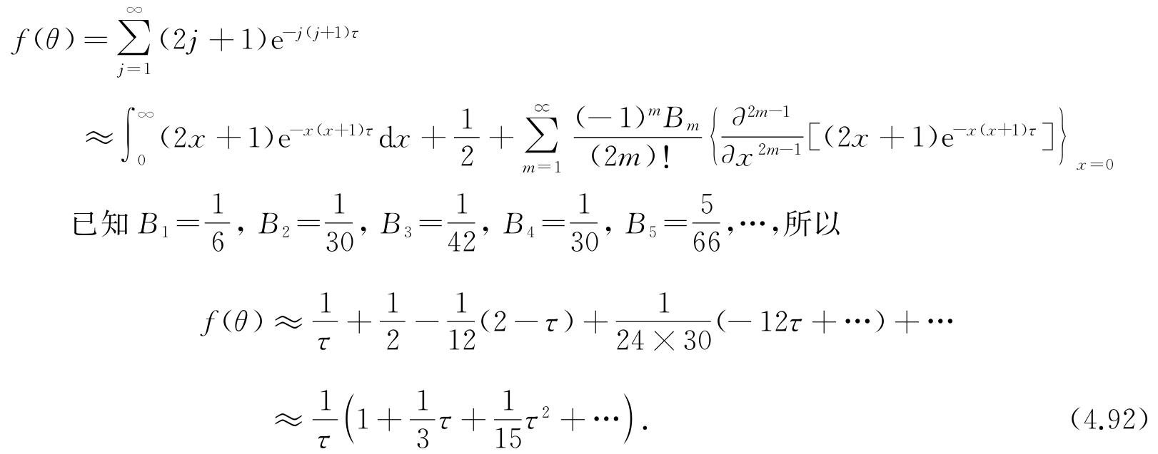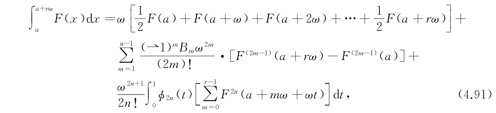 其中B m 是第m个伯努利(Bernoulli)数,ϕ 2n (t)是2n级的伯努利多项式. 将这个展开式应用于式(4.89),现在