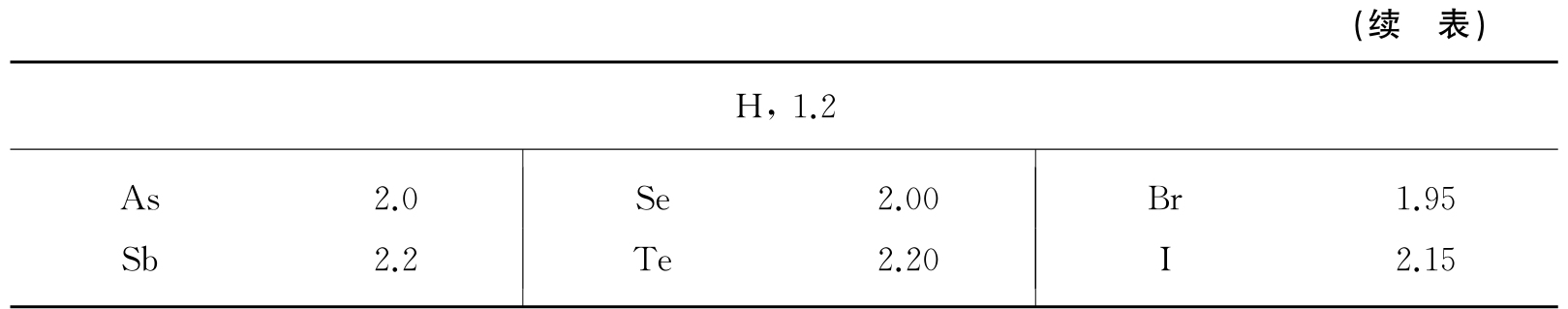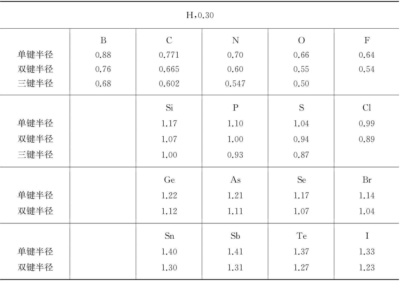 表1.5 原子的共价半径 (单位为Å)