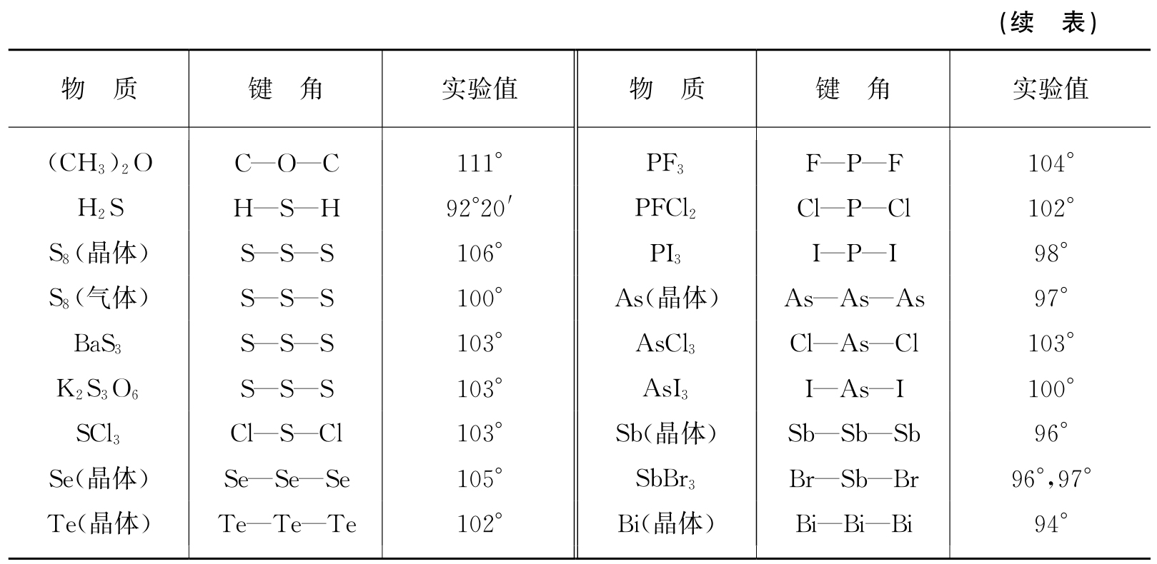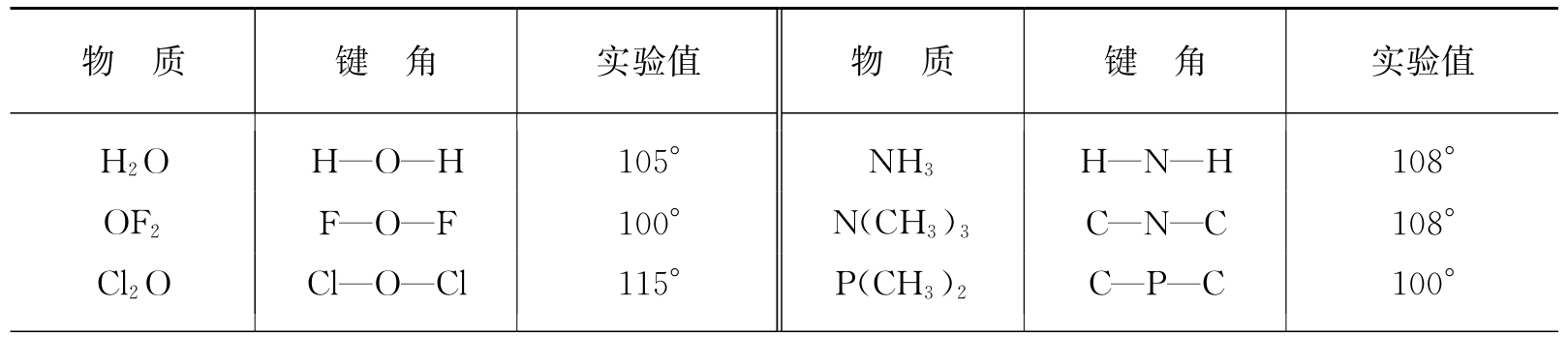 表1.6 键角的实验值