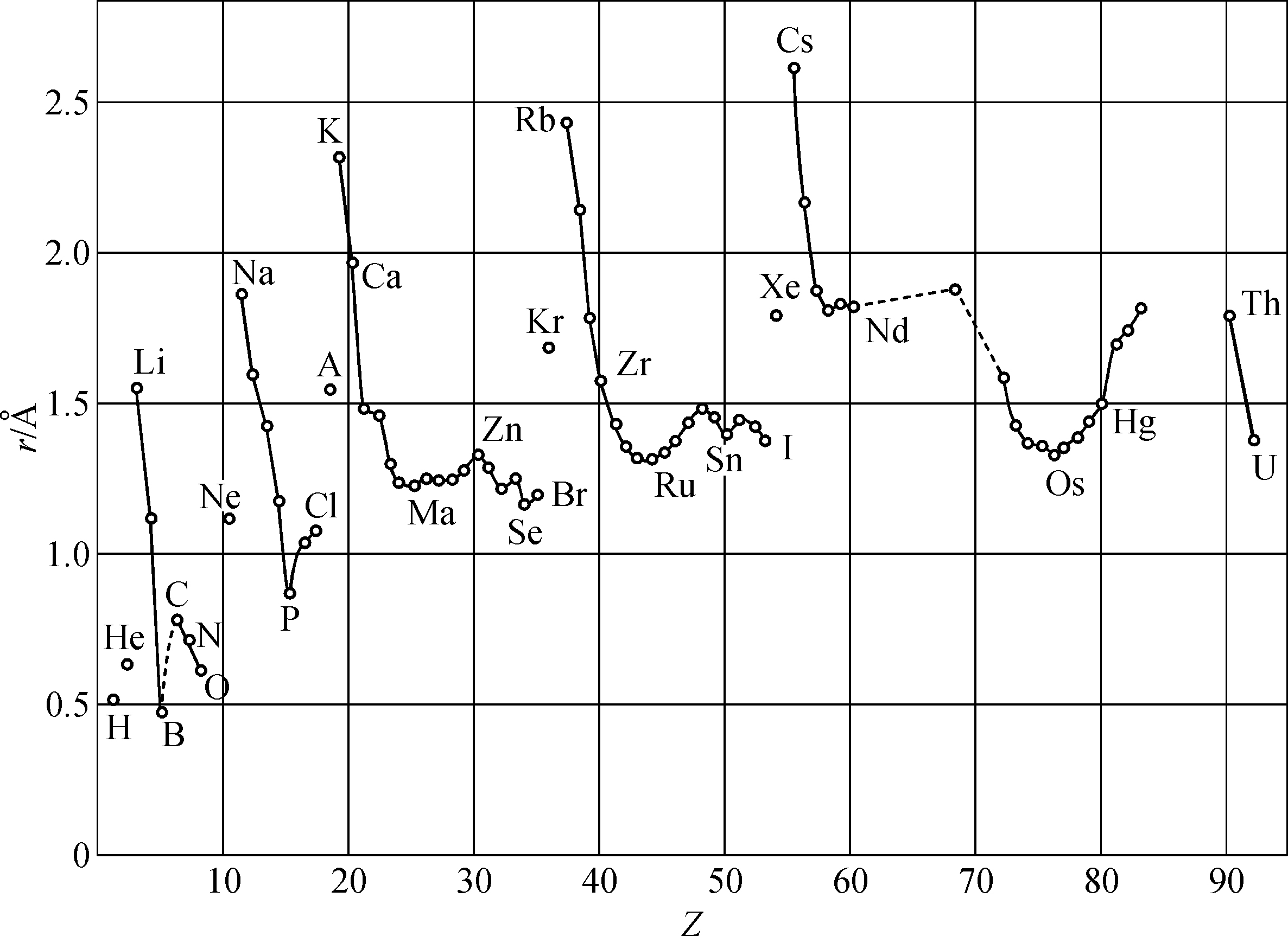 图1.5 原子半径r与原子序数Z关系曲线