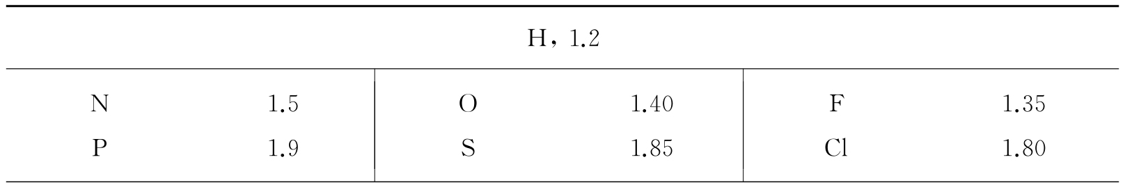 表1.7 原子的范德瓦耳斯半径 (单位为Å)