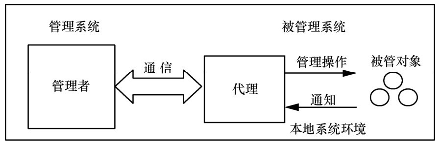 图1-9 描述管理者、代理和被管对象之间相互关系的网络管理系统模型