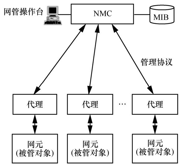 代理:NMC 对被管理的网元的管理操作是通过代理来实现的,通常设在被管理的网元中或附设在网元处。代理负责向 NMC 报告被管理的网元的状态,并从NMC接收关于对这些网元采取何种动作的操作命令。