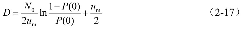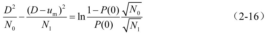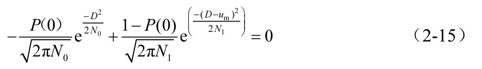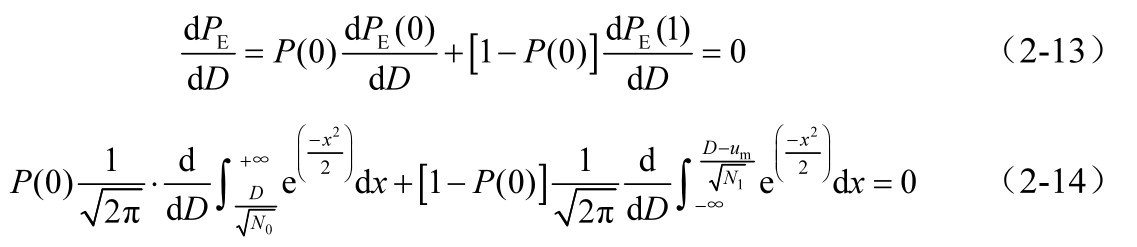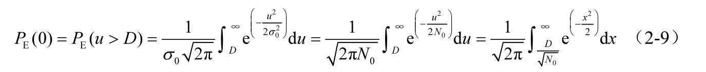 对于信息为“0”时,在判决点上电压 u 超过阈值 D 的概率,即信息“0”判决为信息“1”的误码率 P E (0)为