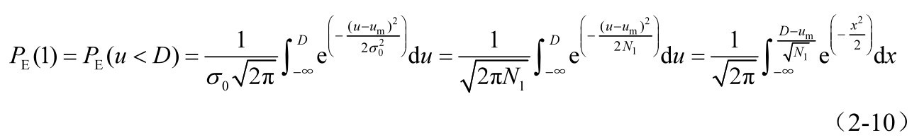 对于信息为“1”时,在判决点上电压 u 小于阈值 D 的概率,即信息“1”判决为信息“0”的误码率 P E (1)为