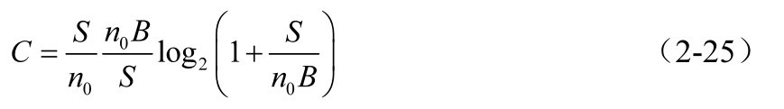 式(2-23)就是信息论中具有重要意义的香农公式,它给出当信号与作用在信道上的起伏噪声的平均功率给定时,在具有一定频带 B 的信道上,理论上单位时间内可能传输的信息量的极限数值。该式还是扩展频谱技术的理论基础。