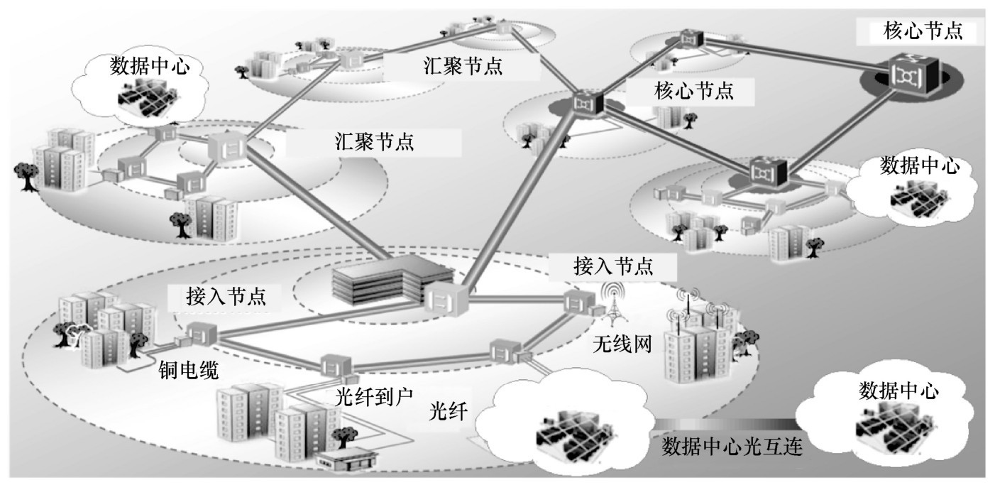 谷歌、阿里巴巴和腾讯等互联网巨头需要存储、传输和处理大量数据,数据中心的流量出现巨大增长,并推动了对IMDD具有更高数据速率接口的需求,这些内容提供商正在构建自己的数据中心。由于数据流量的爆炸性增长和网络流量的快速增加,数据中心网络从10Gbit/s、40Gbit/s逐渐升级到25Gbit/s、100Gbit/s、400Gbit/s。传统采用电方式互连很难满足数据中心传输带宽和传输速率不断增长的需求,这给光互连技术带来了新的机遇。光传输技术具有带宽大、传输距离长的优点。在数据中心内部和不同数据中心之间使用光互连技术将大大提高数据中心的计算和数据处理能力。在当今的数据中心中,大部分内部连接都使用光互连技术,主要包括服务器与数据中心之间数米范围内交换机之间的连接。巨大的数据流量通过光纤进入数据中心网络,云端数据再通过不同的数据中心共享信息,因此光互连技术不仅用于单个数据中心内部数据传输,也用于不同数据中心间的连接。与电信运营商相比,用于数据中心的光互连技术在市场上的规模将会快速增长。如今,如云计算、视频点播、虚拟和增强现实等新应用要求数据中心互联的容量大大增加,未来全球 IP 数据流量增长的75%将保留在数据中心内。2017年,IEEE 完成了400Gbit/s以太网标准化,发布了IEEE 802.3bs-2017,定义了200Gbit/s(200GBASE)和400Gbit/s (400GBASE)若干标准。400Gbit/s数据中心网络在2019年已进入实际部署,并且到2023年,会进一步向1Tbit/s数据中心网络升级。
