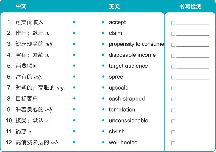 2. 炫耀性消费会使不可持续的消费文化长期存在,造成排斥感或不平等感。(conspicuous consumption, perpetuate, exclusion)