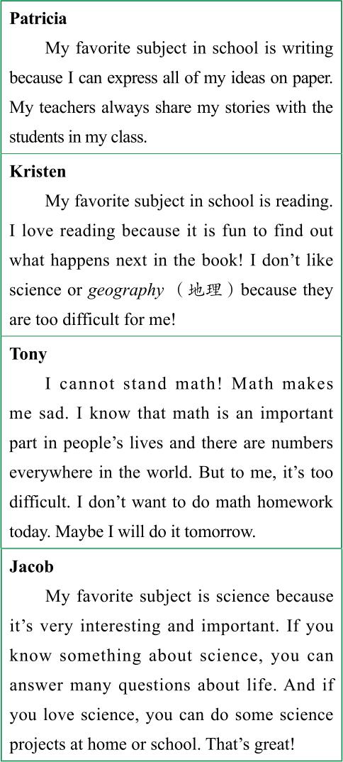 1. What subject does Patricia like best?