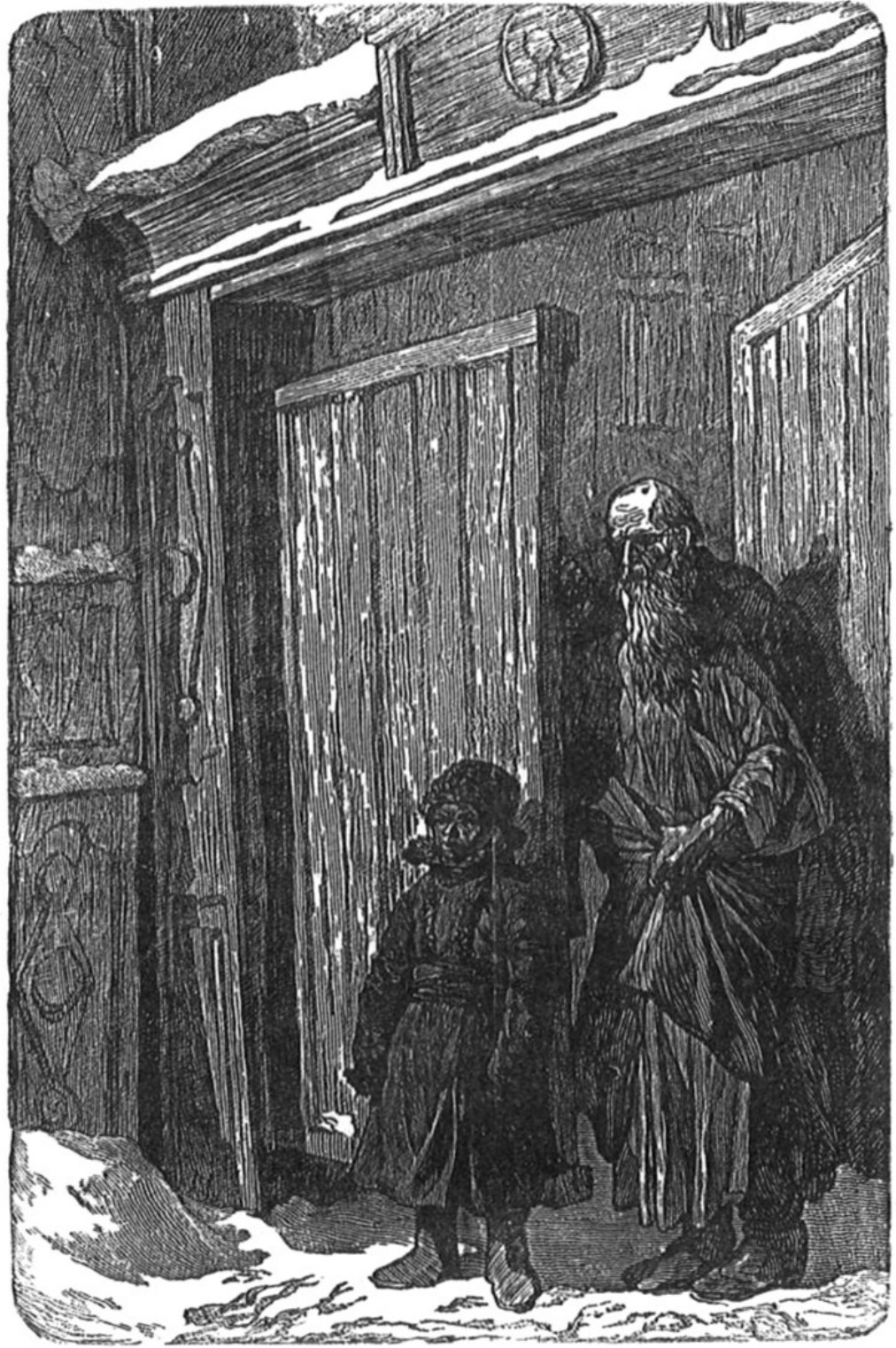 每逢星期五,小茨冈就赶着雪橇到集市上去买东西。他把那匹枣红骟马套在宽大的雪橇上,这匹马是外婆最宠爱的马,名叫沙拉普,又滑头又淘气,吃草料也特别挑剔。小茨冈穿一件短皮袄,戴上一顶沉重的皮帽,腰里紧紧地扎着一条绿色的宽腰带。有时他很晚还没有回来,家里人就全都坐卧不安,不时地走到窗前,哈气融化了玻璃上的冰,焦急地朝街上张望着。