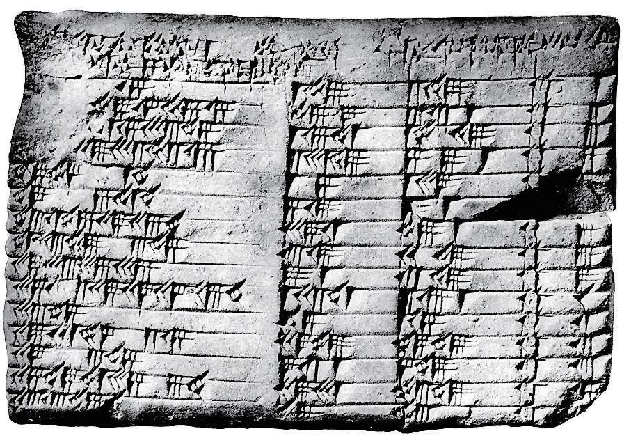 在美索不达米亚,非常幸运的是,由于文书是记在湿泥板上,而不是写在纸张、莎草纸、树皮或绳子上的,因此几乎可以永久保存。例如,火焚不会毁坏泥板,反而会让它更持久。在美索不达米亚,我们有将近三千年的泥板或泥块记录,从中可以重建其文化史。施曼特-贝瑟拉(Denise Schmandt-Besserat,1933—)运用这些资料构建了一个非常有说服力的关于公元前3000年美索不达米亚的文字起源的故事:人们一开始用泥块记录,然后有了泥封(clay envelope),最后是写在泥板上的楔形文字。从本质上讲,她的理论认为,一切都是从记下“某某人欠了什么什么”开始的。他们高度复杂的六十进制算术似乎源于要有一套统一的中央会计制度(可能在乌尔第三王朝),包括用各种单位来衡量的商品和劳动,常写成4、5、6、10、12等的倍数。现存有许多独特的会计泥板,上面详细记载了劳动和物品,可参考马特西奇(Richard Mattessich)的著作《会计与会计思想的起源》( The Beginnings of Accounting and Accounting Thought )。