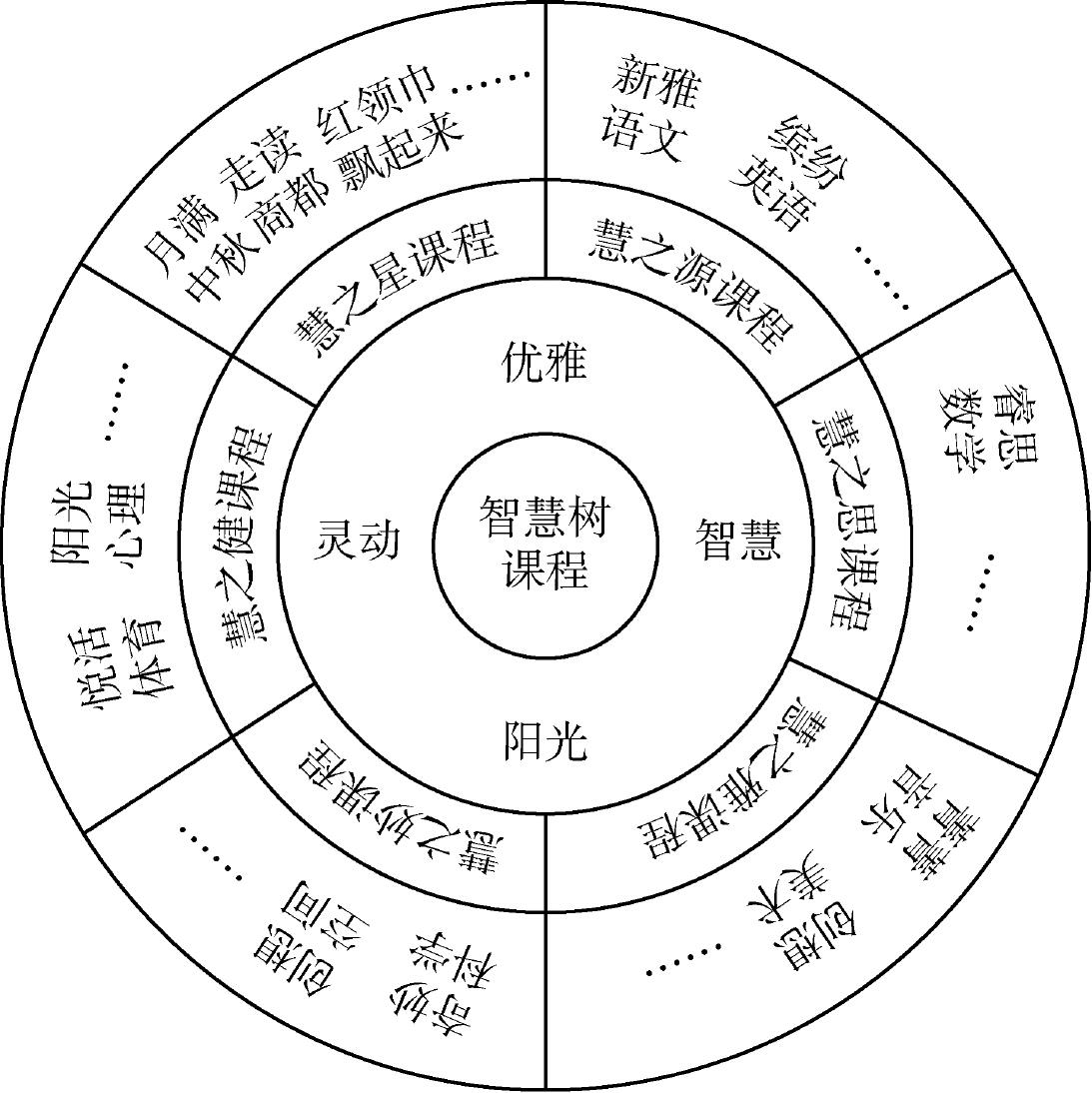 课程开发需要智慧、课程实施需要智慧、创新创造需要智慧。鉴于此,学校以“智慧树课程”为课程模式,教师和学生完成课程的过程就是智慧生成的过程。在一个个引人入胜的场景中,孩子们徜徉在五彩缤纷的世界里,学会了学习、探索和发现,激发了创新潜力,启迪了智慧,体会了学习乐趣。