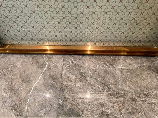 S 墙面烤漆玻璃、不锈钢踢脚线与地面石材压边工艺
