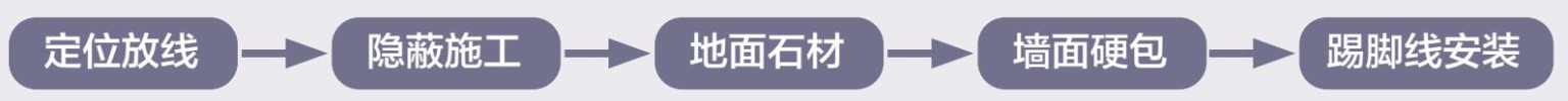 3.现场交底:交底内容包括完成面放线尺寸,收口节点大样,硬包墙面、石材地面排板下单图等关键内容。踢脚线基层板固定安装在基层板上,墙根处地面石材应延伸至踢脚线完成面10~20 mm,避免出现质量隐患。