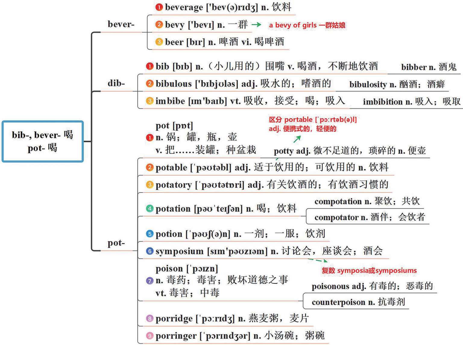 源 bever-喝+-age表物品。表示任何可供饮用的液体,包括水、茶、咖啡、果汁、酒等各种非固体的食物饮料。