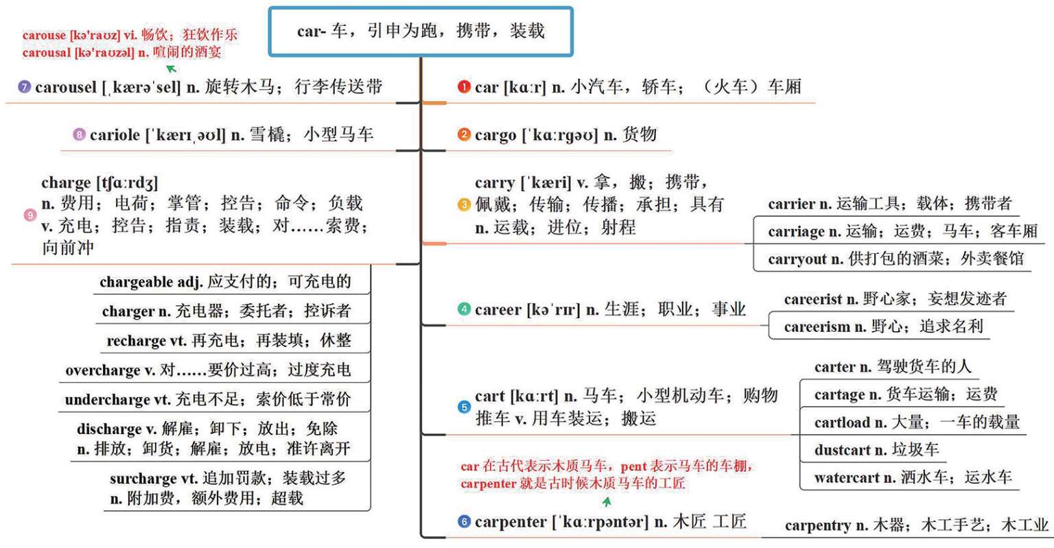 源 car-车,引申为跑,携带,装载 +-eer表示“从事某种职业或活动的人”。career原指马车走过的路程、车辙,被引申为一个人在人生道路上的“道路”或“生涯”。