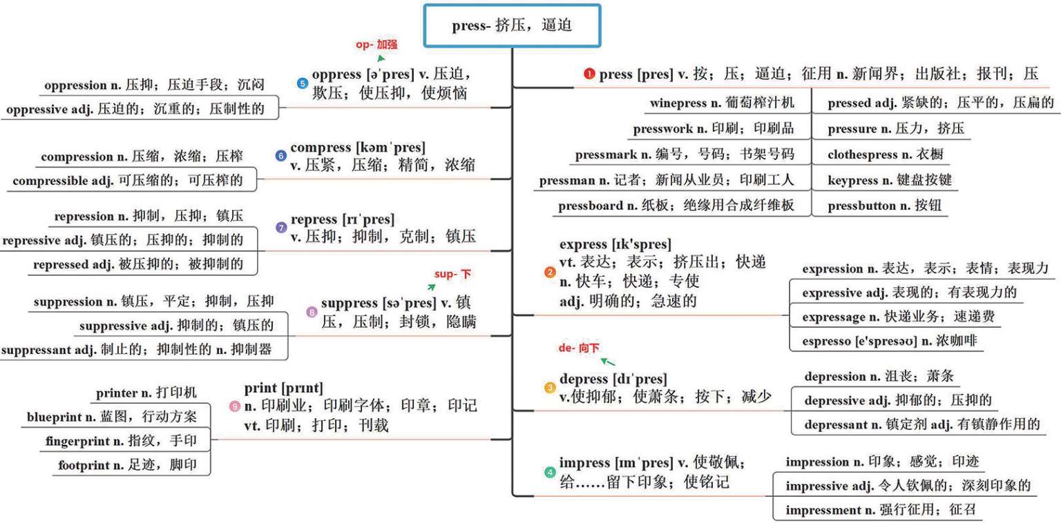 源 de-向下+press-挤压,逼迫。表示向下压低、压制或使情绪低落等多重含义,还常用来表示“使萧条”或“使跌价”。