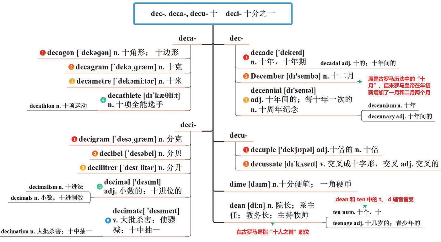 源 dec-十+-ade某种状态或集体。表示一组十个的计量单位,通常指一个周期为十年的时间段,在现代英语中特指“十年”。