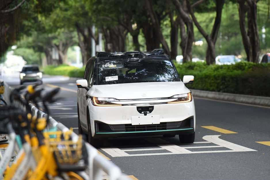 这是百度“萝卜快跑”自动驾驶汽车 (Robotaxi) 的日常一幕。