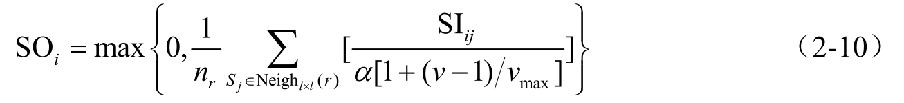 式中,Neigh l × l ( r )表示位置 r 周围边长 l 形成的正方形局部邻域;SI ij 为需求物元 S i 与 S j 的物元相似度; n r 为位置 r 周围邻域内包含的需求物元个数; α 为群体相似性参数; v 为蚂蚁的移动速度; v max 为蚂蚁最大移动速度。