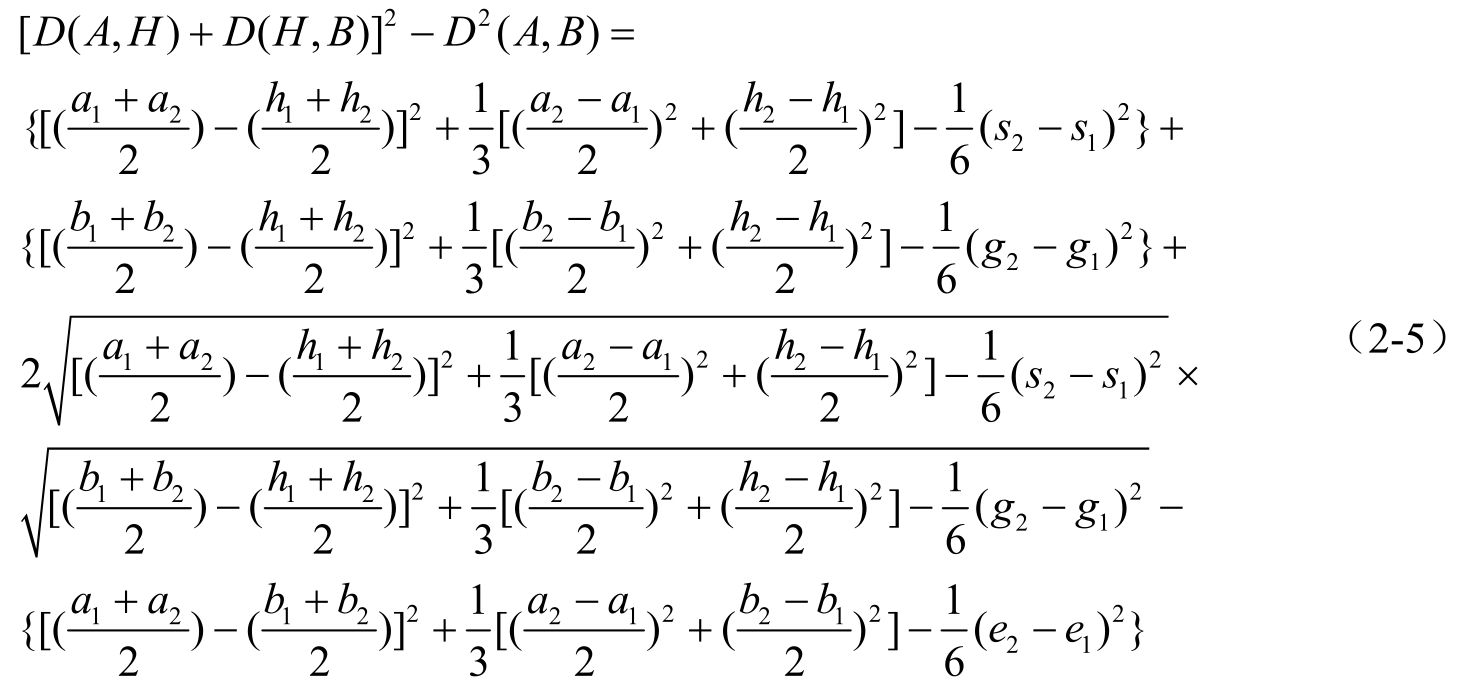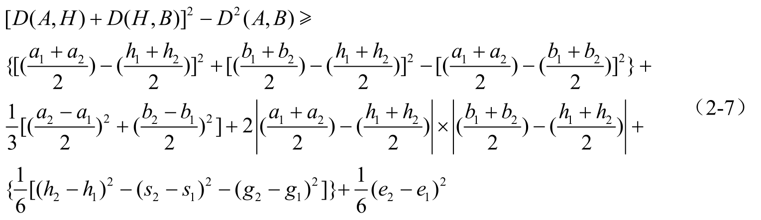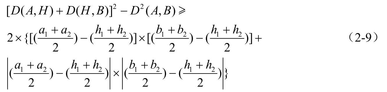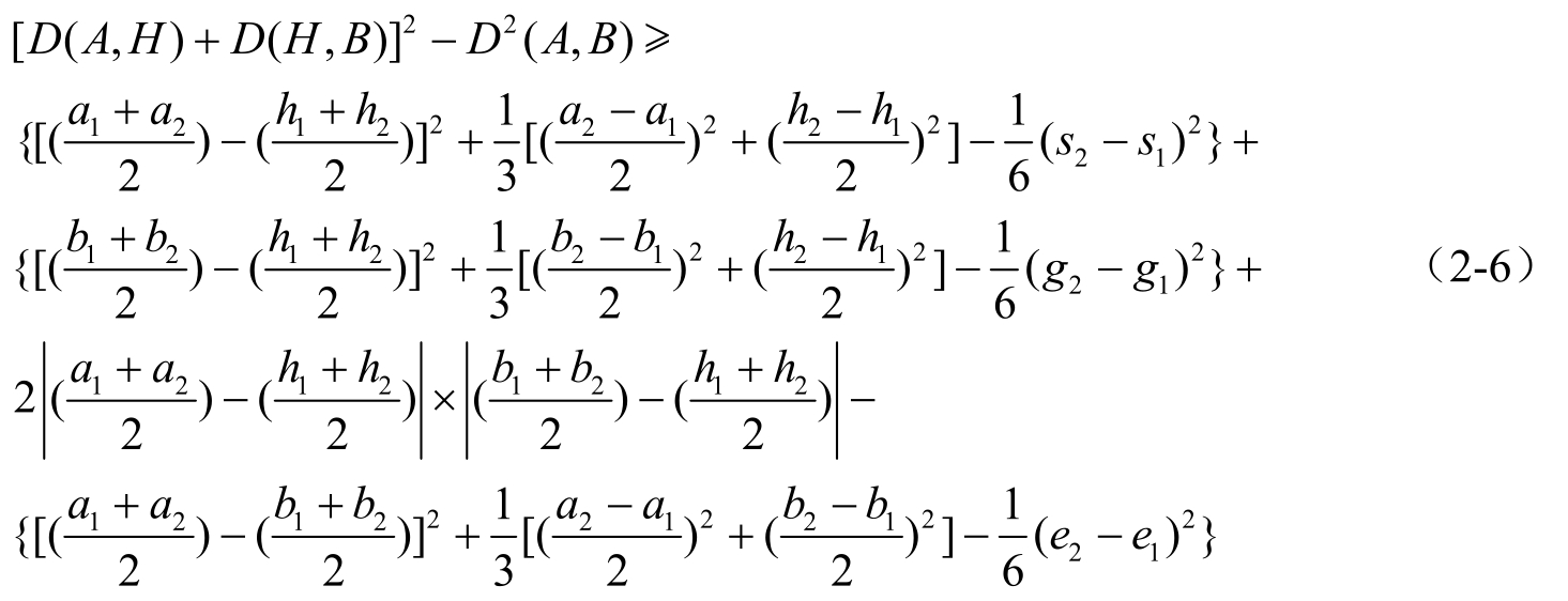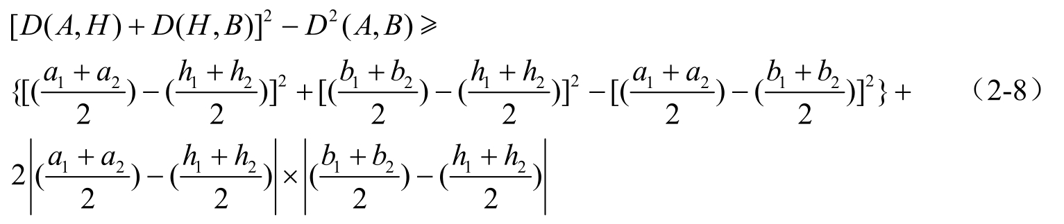 所以[ D ( A , H )+ D ( H , B )] 2 -D 2 ( A , B )≥2 M ≥0