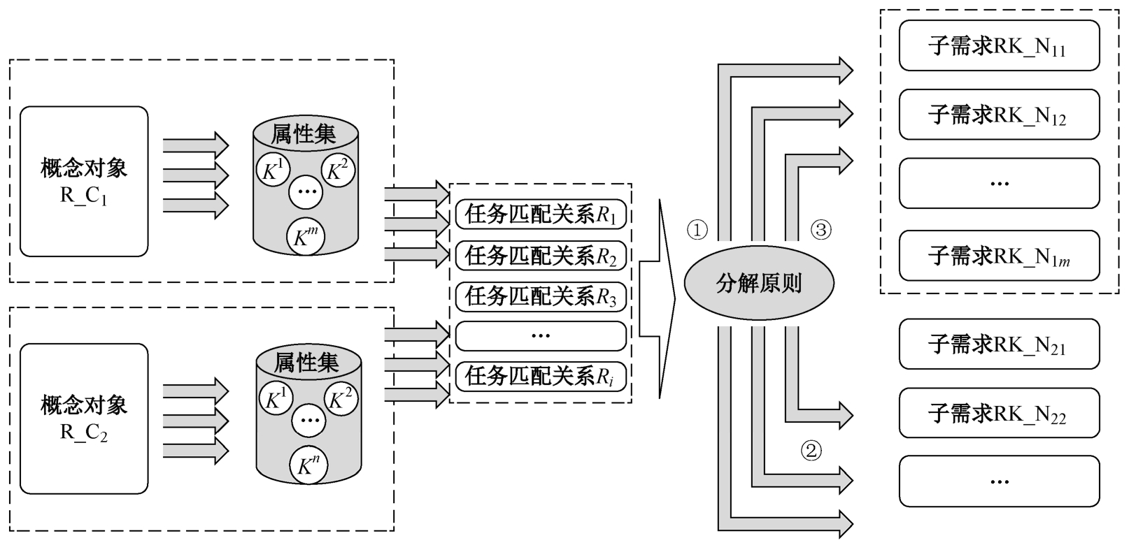 分解遵从以下准则:① 分解后的子需求知识与原需求知识必须保持语义一致;② 分解过程中无冗余产品设计需求知识产生;③ 分解后的子需求知识的并集应包含原需求知识的全部信息。
